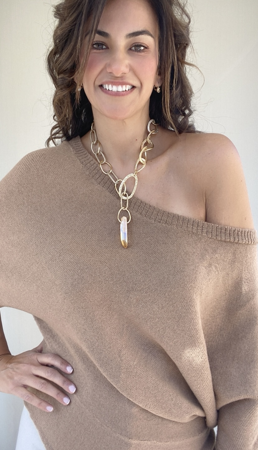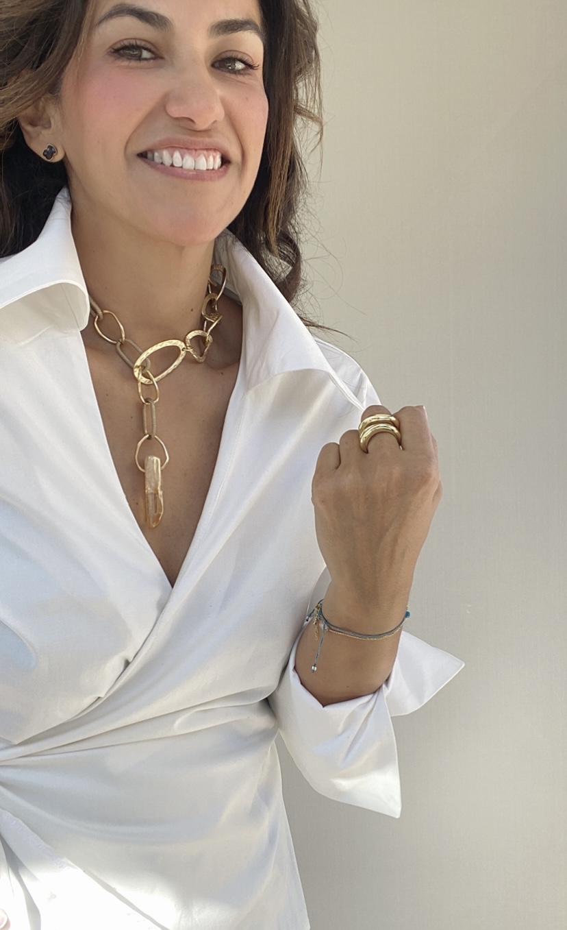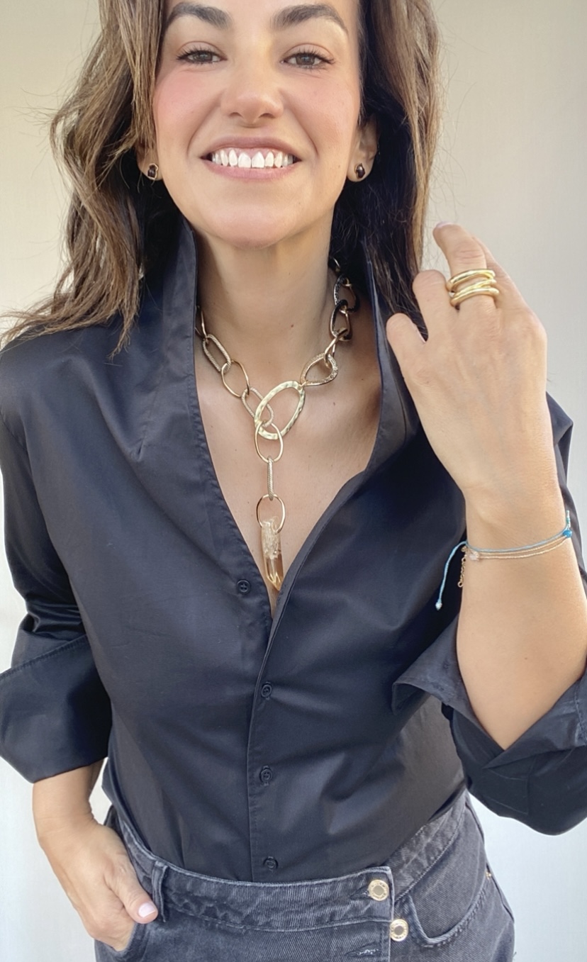 Collar GOLD es una pieza única, dentro de la colección Judith. Una prenda corta para lucir en toda ocasión. Un collar que nos da luminosidad al exhibirlo y proponer nuestra propia imagen del día.